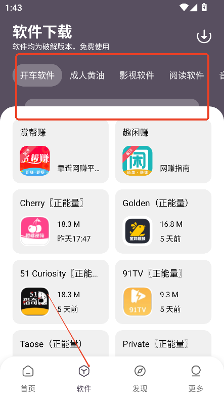 打开软件板块,可以浏览全部软件资源,并按分类进行查看。