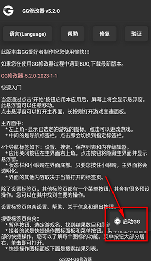 打开GG修改器,点击界面右下角的启动按钮。