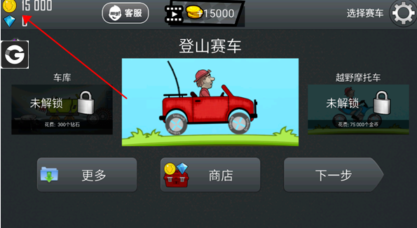 进入游戏后,先通过正常游玩积累一些金币,例如当前金币显示为15000。