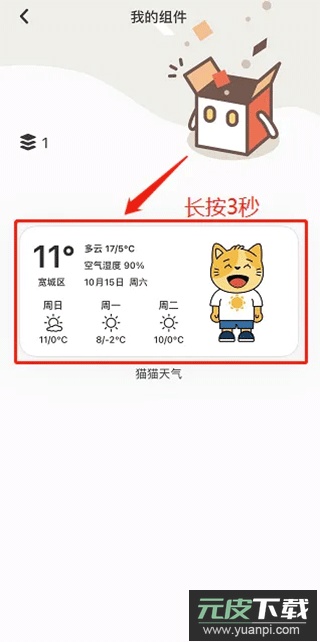 2、在我的组件页面,长按需要删除的组件例如【猫猫天气组件】约五秒钟;
