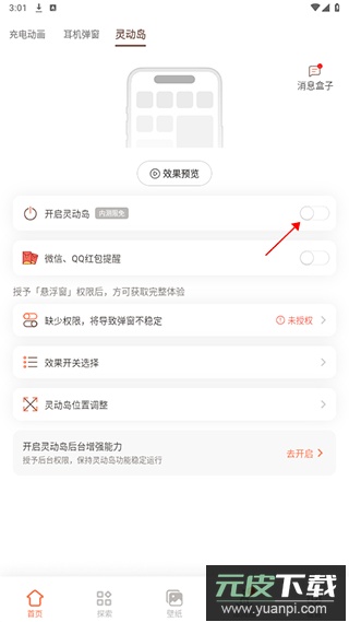 接着打开灵动岛功能的启用开关。