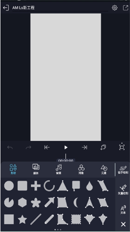 2、在项目中可以添加各类素材,包括形状、媒体文件、音频、文本对象与其他元素;