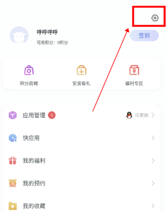 1、进入应用内“我的”页面,点击右上角的“设置”图标;