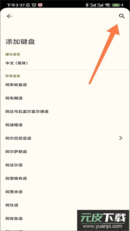 3、进入添加键盘页,点击右上角搜索图标;