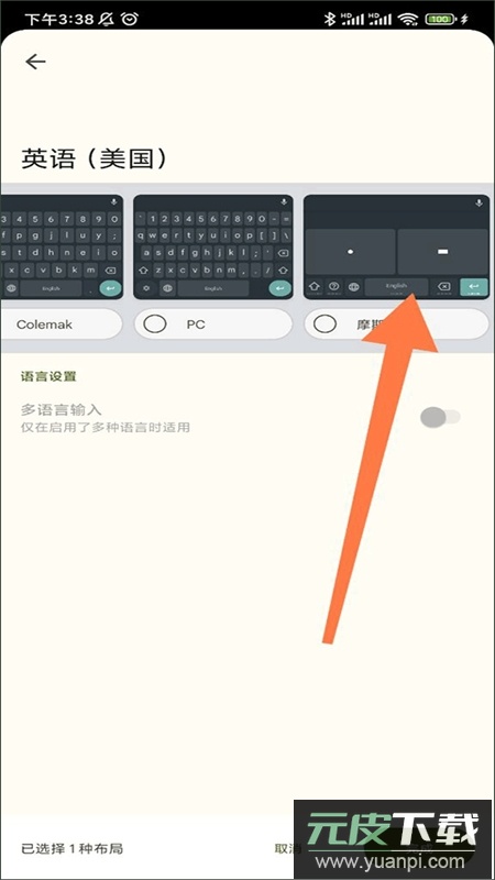 6、返回输入界面,此时语言仍为英语(美国),点击左下方地球图标即可切换至摩斯电码模式。