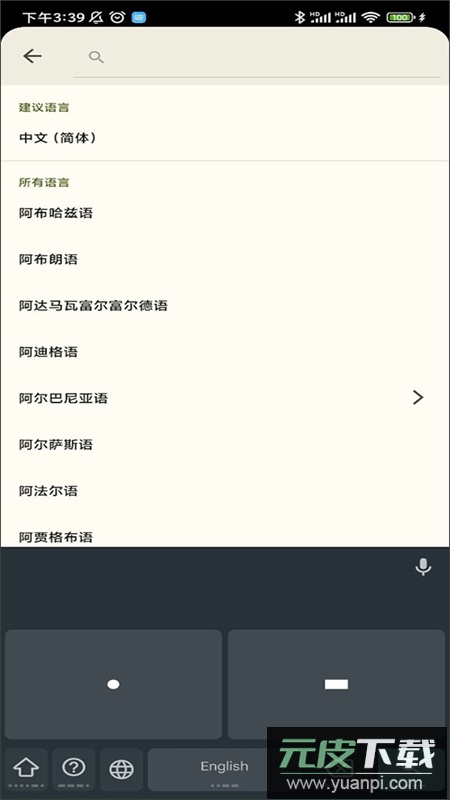 1、安装应用后进入,选择语言选项;