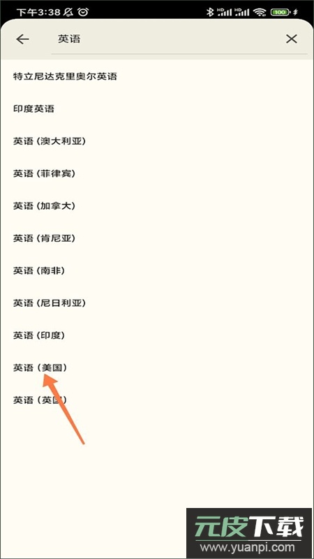 4、在搜索框输入英语,选择英语(美国);