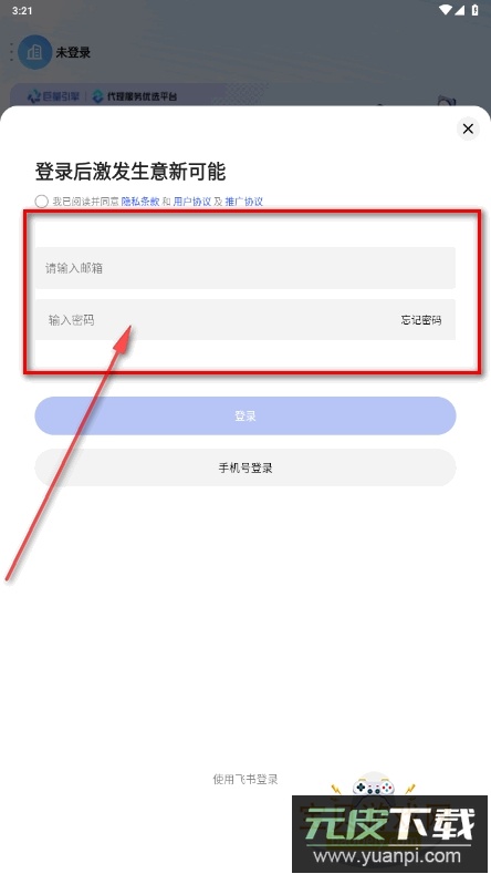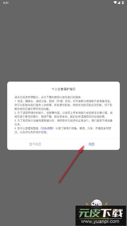 2. 进入界面后,仔细阅读并同意平台的隐私政策;