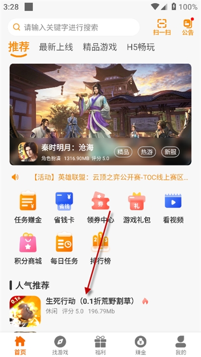 2、进入首页后,浏览并选择你感兴趣的游戏;