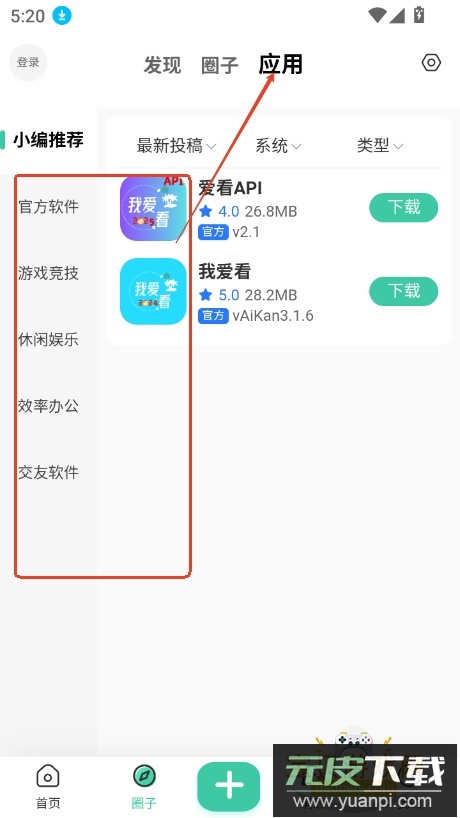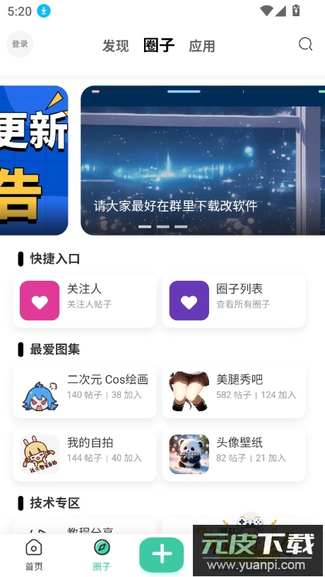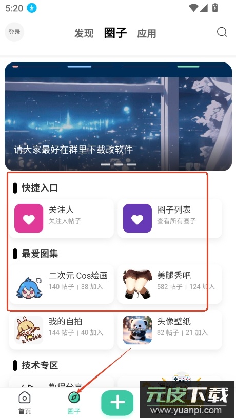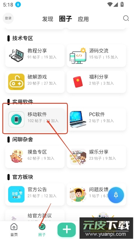 2、进入圈子板块,能发现各类有趣的圈子或实用应用;