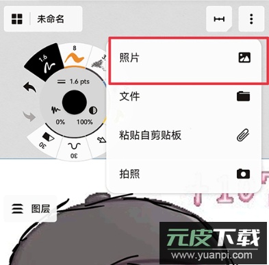 4、在绘画过程中也可随时导入图片,只需点击界面右上角的菜单点。