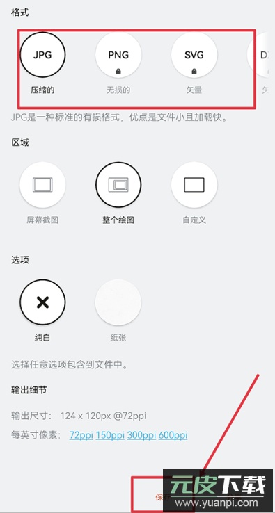 9、在导出界面挑选需要的文件格式,点击保存后作品便会存储至设备中。