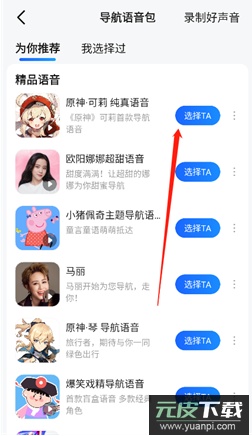 在导航语音包列表里定位到茉莉语音包,点击【选择ta】;