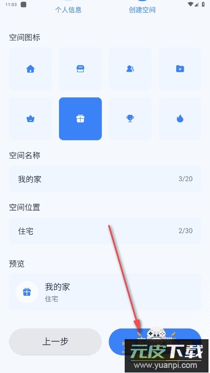3.继续完善空间名称等基本信息,确认后点击完成按钮。