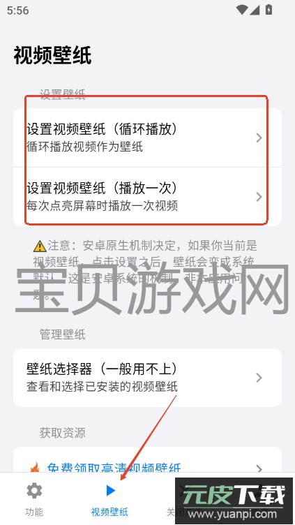 进入视频壁纸板块,可以自由设置壁纸的播放模式;