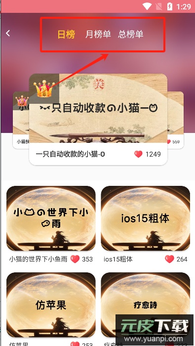 2. 榜单区分为日榜、月榜与总榜三种类型;