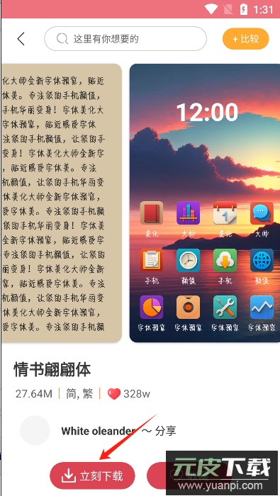 4. 在字体详情页点击立即下载按钮,即可完成下载并自动应用设置。