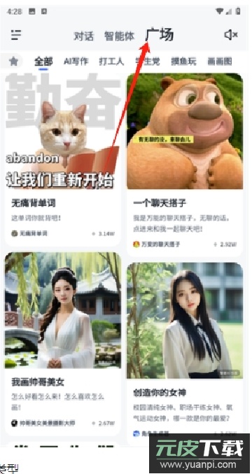 1、在广场界面,用户可以浏览各种写作分类;