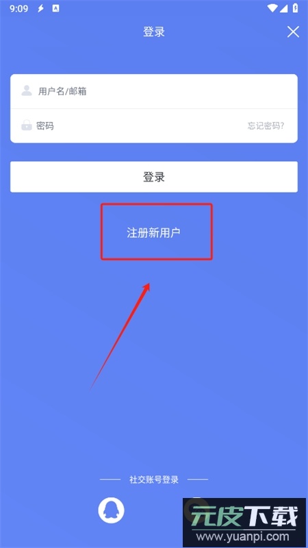 3、在登录界面找到并点击下方的注册新用户选项;