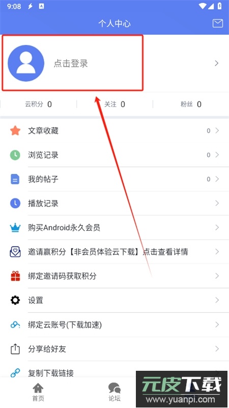 2、打开软件进入个人中心页面,点击登录入口;