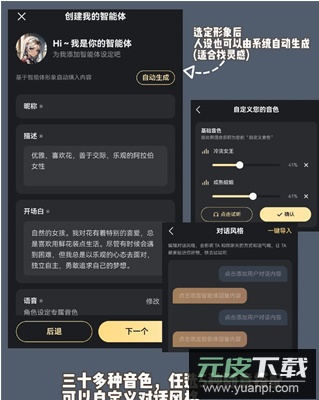 2、软件提供超过30种音色选择,允许任意挑选5种进行混合搭配,同时支持自定义对话风格。