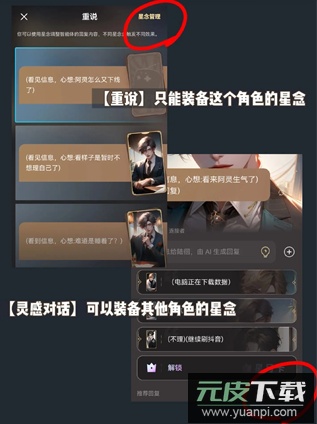 7、请注意,只有对应角色的星念可以装备,其他角色的星念需通过灵感对话解锁装备权限。