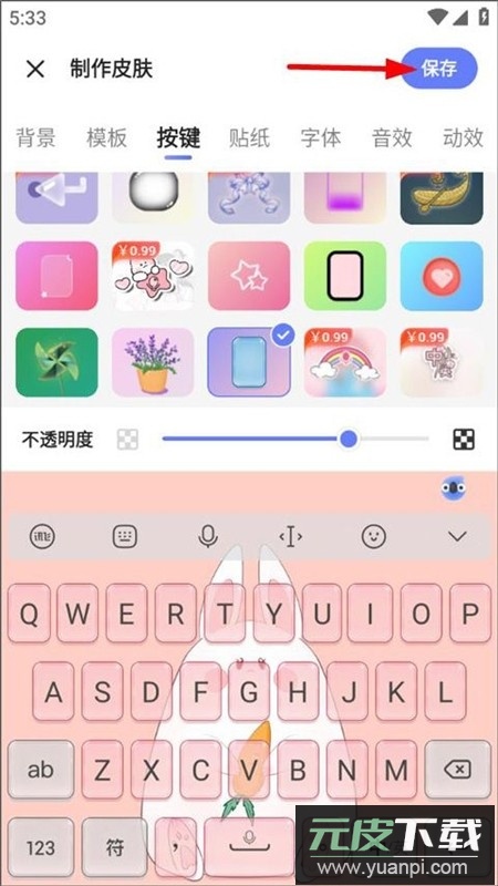 6、皮肤设计完成后,点击右上角保存;已保存的自定义皮肤可分享给好友。