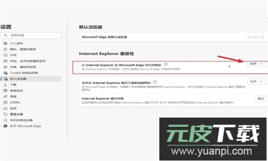 2、在默认浏览器设置页面中,找到【Internet explorer兼容性】选项,将其设置为始终启用即可。