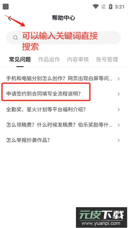 2、在页面内查找关于签约申请与合同填写的指引说明;