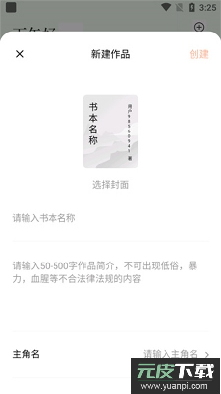 3、填写作品名称、内容简介、主要角色及面向读者群体等信息,确认后即可创建并开始发布。
