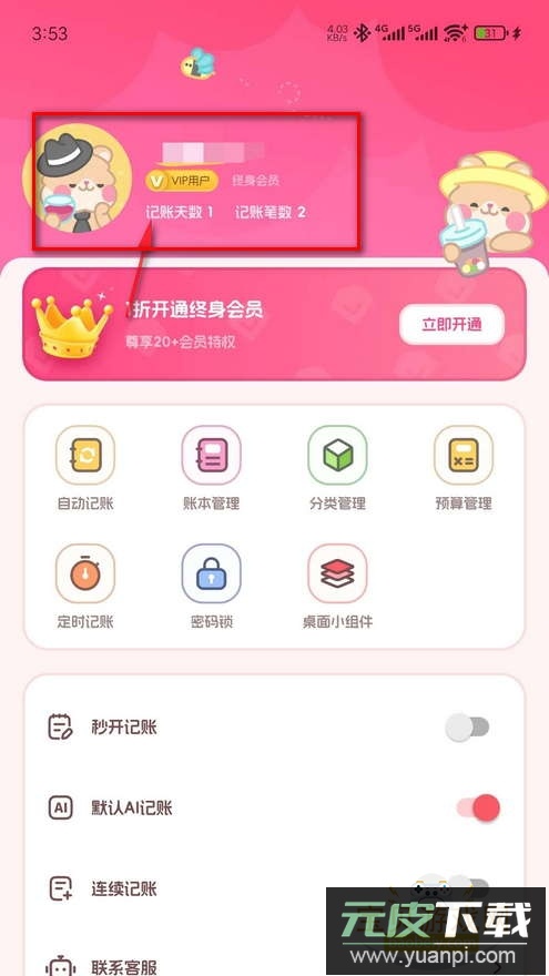 会员功能解锁:此版本已解锁会员全部权益,用户可免费使用自定义分类、财务分析报告等高级功能。