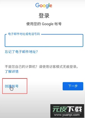 1、首先下载并安装Google Play应用,打开后选择登录界面中的创建账号选项。