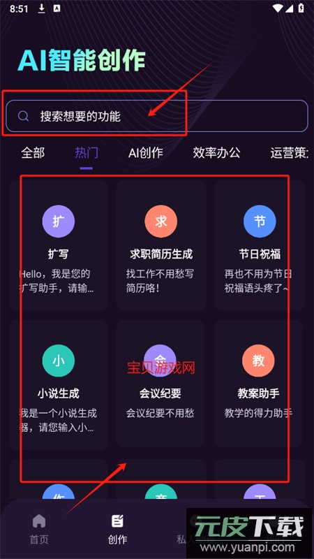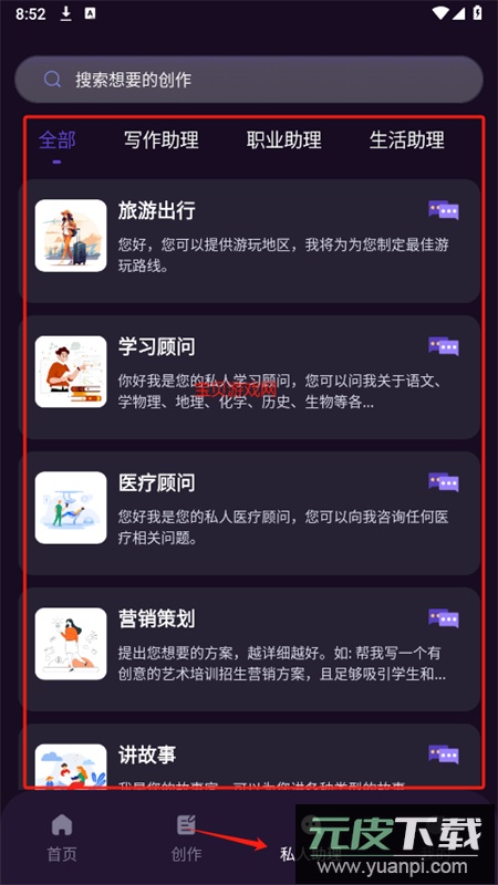 5、私人助理板块配备了针对写作、生活规划及职业发展等场景的专属智能助手;