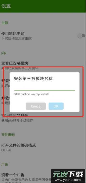 随后点击pip选项中的安装模块功能,将看到以下界面:
