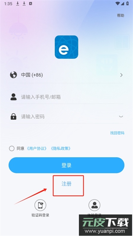 下载安装易微联应用,使用手机号或邮箱完成注册并登录;