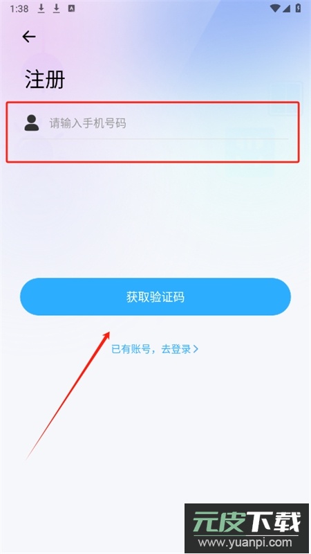 2、打开软件进入登录界面,点击下方注册选项;
