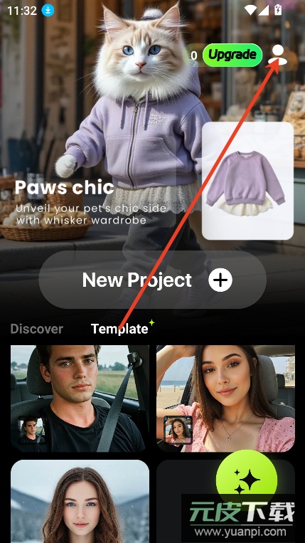 进入软件首页后,点击界面右上角的用户图标。