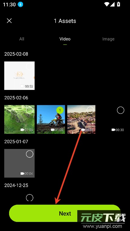 2、从素材库中选择想要使用的视频内容,点击下一步继续。