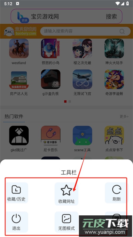 4、使用底部工具栏的功能,可以收藏当前网页或一键开启无痕浏览模式。