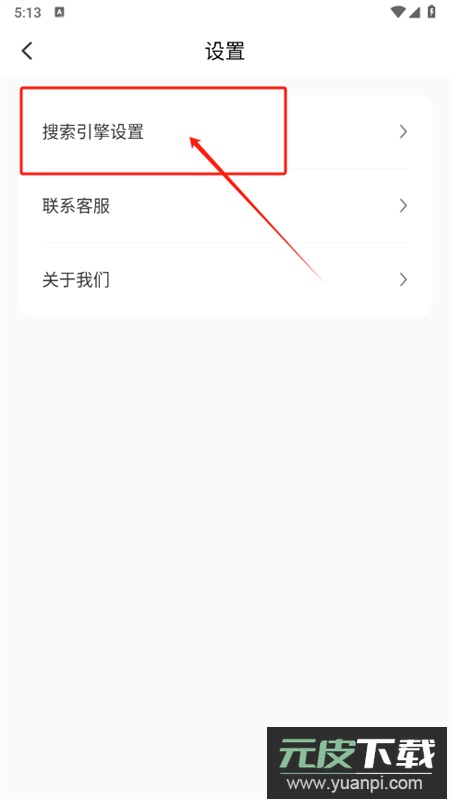 2、在应用内找到设置选项,进入后选择搜索引擎设置菜单。