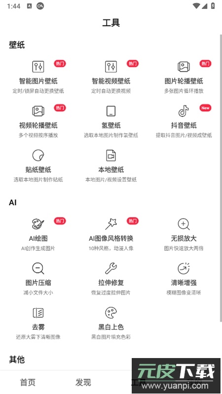 4、实用工具:免费使用自动换壁纸、AI识图、以图搜图及无损放大等功能。