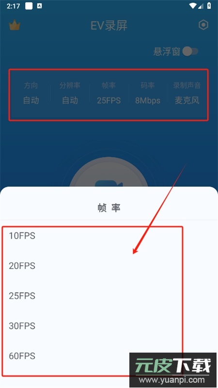 4、通过顶部功能栏,用户能依据实际需求调整录制帧率、码率与分辨率等参数;