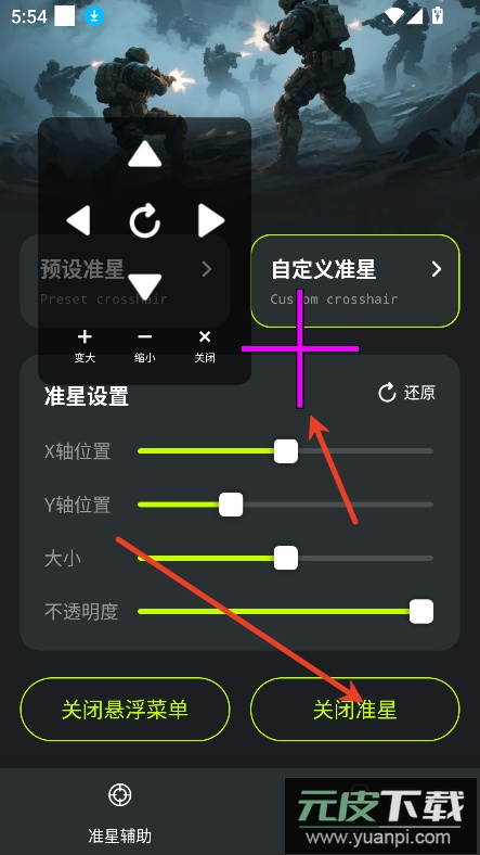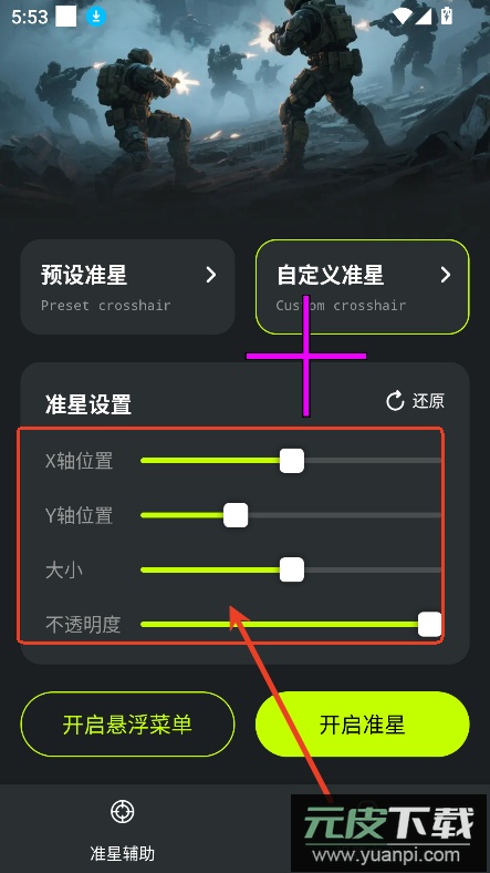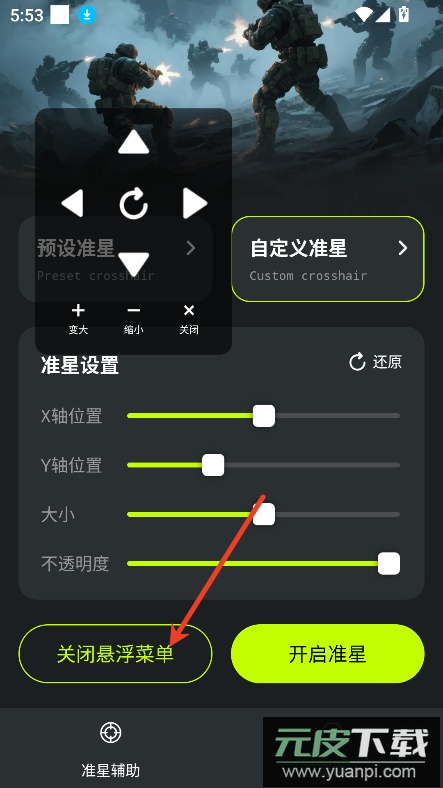 6、最后点击开启准星按钮,即可在游戏中启用自定义准星。
