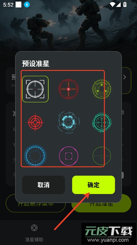 2、在样式库中挑选喜欢的准星模型,点击确定进行选择;