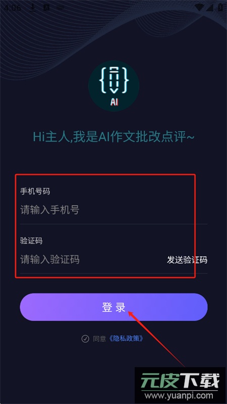 2、输入手机号及收到的验证码,即可完成快速登录。
