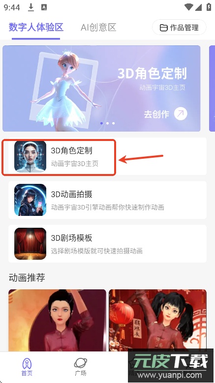 组件下载完成后,直接选择“3D角色定制”功能,即可开始为动画制作专属的3D角色。
