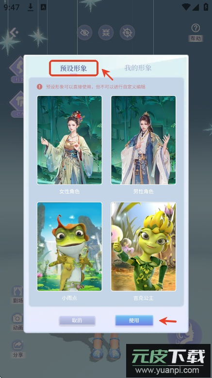 1. 3D角色定制:提供精细的捏脸系统,支持多维度面部调节;配备丰富的换装素材库,发型、服饰、妆容均可自由组合;同时具备拍照换脸技术,可将真人形象融入二次元角色。