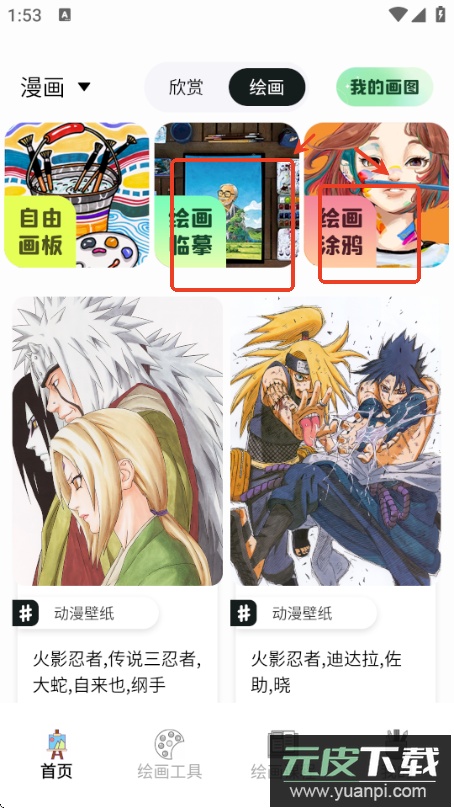 也可以选择绘画临摹或绘画涂鸦功能,先跟随素材库中的作品进行模仿练习。