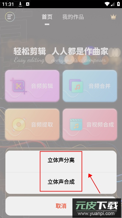 若点击“立体声”功能,用户可进行立体声分离或立体声合成的相关操作。