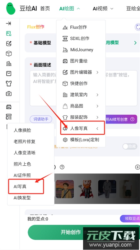2、在AI绘图区域找到人像写真分类,点击进入AI写真功能。